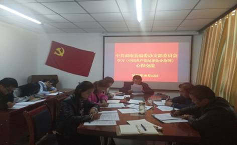 近日,肃南县编委办党支部组织召开党员大会,专题交流学习了《中国共产党纪律处分条例》,会上全体党员干部紧紧围绕新修订的《中国共产党纪律处分条例》学习心得进行了交流发言。通过相互交流学习,进一步开阔学习的视野,大家深刻领会了新《条例》修订的背景、理念和核心要义,进一步增强了党员干部党纪意识和组织观念,纷纷表示:在今后的学习工作中,将以新《条例》为指导和遵循,牢固树立“四个意识”,坚决做到“两个维护”,坚决带头执行《条例》,模范遵守党纪党规,自觉做守纪律、知敬畏、存戒惧的模范党员干部。