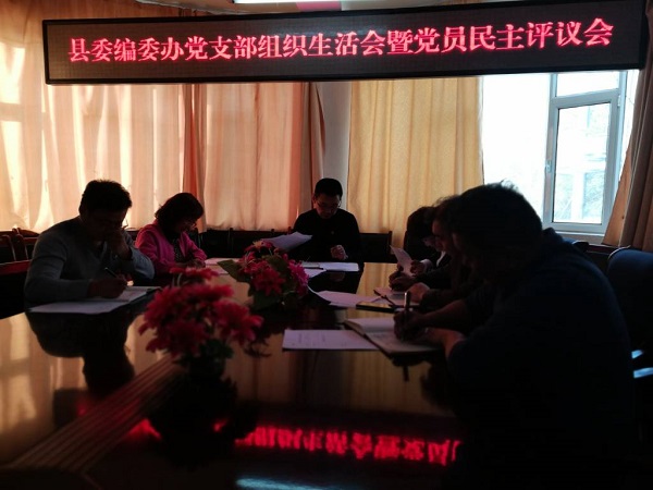 3月26日,县委编办党支部召开2018年度组织生活会暨党员民主评议会议,机关全体党员参加。